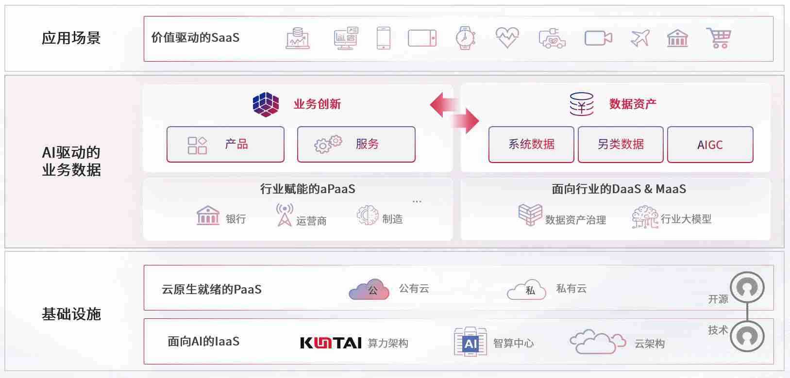 数字时代,,,,围绕企业数字化转型的关键要素,,,,z6com尊龙数码开创性的提出数云融合战略和技术体系框架,,,,着力在云原生、、、数字原生、、、AI原生和信创产业上架构产品和服务能力,,,为处在不同数字化转型阶段的快消零售、、、汽车、、、金融、、医疗、、、政企、、、教育、、、、运营商等行业客户提供泛在的敏捷IT能力和融合的数据驱动能力,,,,构建跨界融合创新的数字业务场景和新业务模式,,,,助力企业级客户建立面向未来的核心能力和竞争优势,,全面推动社会的数字化、、智能化转型升级。。。。